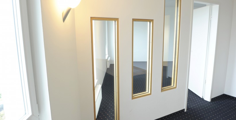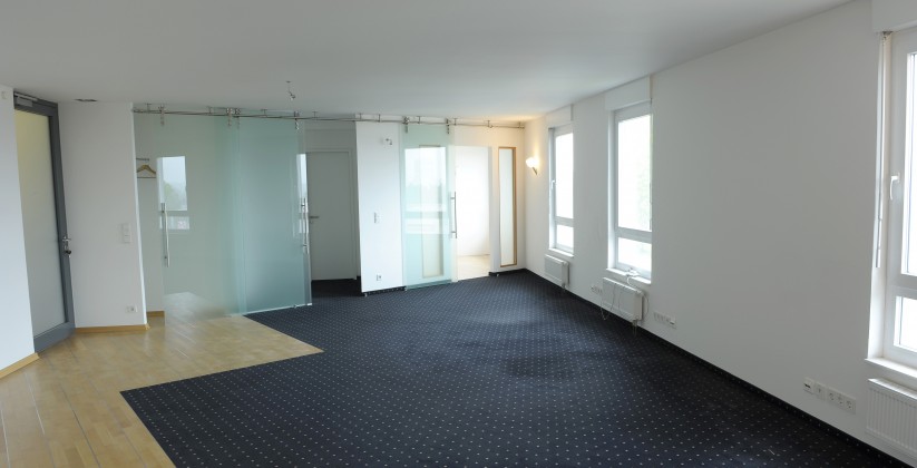 Die helle und ruhig gelegene Fläche befindet sich im 3. Geschoss des vierstöckigen Wohn- und Geschäftshauses. Sie ist bequem über den Eingang der Feldbank 5 und über den modernen, im Treppenhaus integrierten Aufzug zu erreichen. Die Fläche besticht vor allem durch ihre intelligente Raumaufteilung: Neben dem repräsentativen, mit Textilbodenbelag und Parkett ausgestatteten Großraum wurde im hinteren Teil der Fläche ein separater Büro- und Konferenzraum eingerichtet, der durch eine attraktive Glasfensterwand mit Schiebetür abgetrennt ist. EDV-Verkabelung ist vorhanden. Ein großzügig angelegter Lagerraum sorgt außerdem für eine entspannte Archivierung Ihrer Dokumente. Ebenfalls separiert und durch Glaselemente und Schiebetüren abgetrennt sind der Küchenraum sowie WC- und WC-Vorraum. Praktisch ist auch der zusätzlich anmietbare Abstellraum im Keller. Je nach Mietdauer ist eine variable und individuelle Raumgestaltung möglich. Sprechen Sie mit uns!